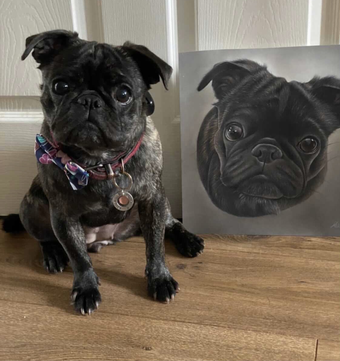 I had a surprise portrait made for my sister of her bulldog, its just incredible! There are no words to describe how good the art work is in real life. I wanted to keep it myself! 100% would buy another one if I had any pets! This artist will NOT disappoint, shes absolutely FANTASTIC!